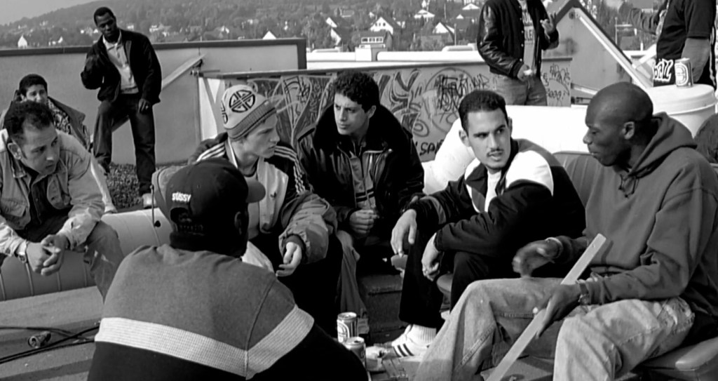 Its in scenarios like these that La Haine shines; there’s personality in spades in the interactions of the main characters. Whilst the film is overall one of tension and drama, there’s humour peppered throughout. One memorable scene involves an interaction with an elderly man in a public bathroom who recounts a bizarre and unprompted comedic story out of left-field.